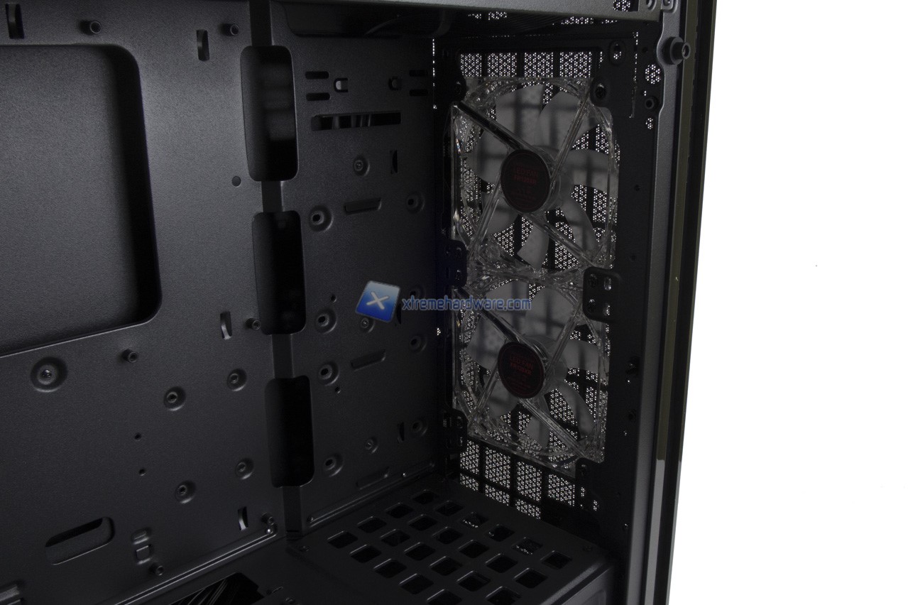 Il lato destro interno ci mostra meglio anche le due, già viste, ventole da 120 mm preinstallate.